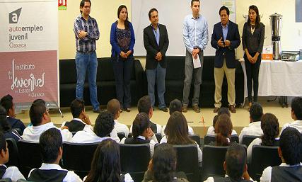 El director del Instituto de la Juventud del Estado de Oaxaca, Francisco Melo Velázquez, entrega apoyos del programa “Autoempleo Juvenil”, a estudiantes de la Universidad Tecnológica de los Valles Centrales de Oaxaca.SONY DSC