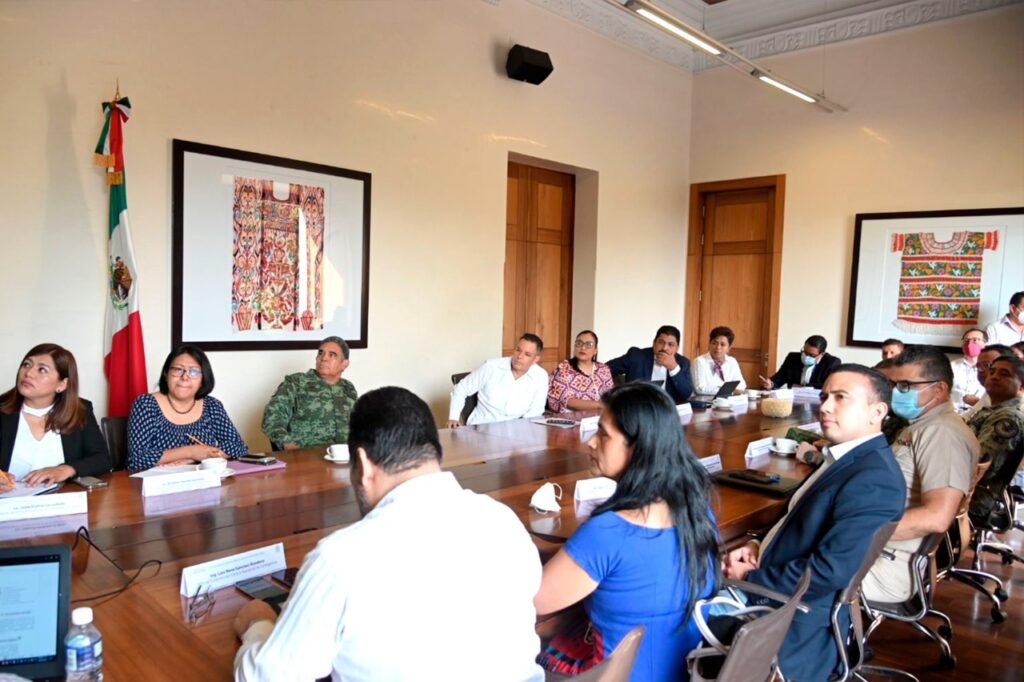 Oaxaca de Juárez, Oax. 24 de mayo de 2022.- Con el objetivo de garantizar las condiciones de paz necesarias para que las elecciones del próximo domingo 5 de junio se desarrollen con integridad, el gobernador Alejandro Murat Hinojosa encabezó la instalación de la sesión permanente de la Mesa de Seguridad del estado de Oaxaca, que reúne a representantes del Gobierno de México, Fuerzas Armadas, Guardia Nacional y autoridades electorales.