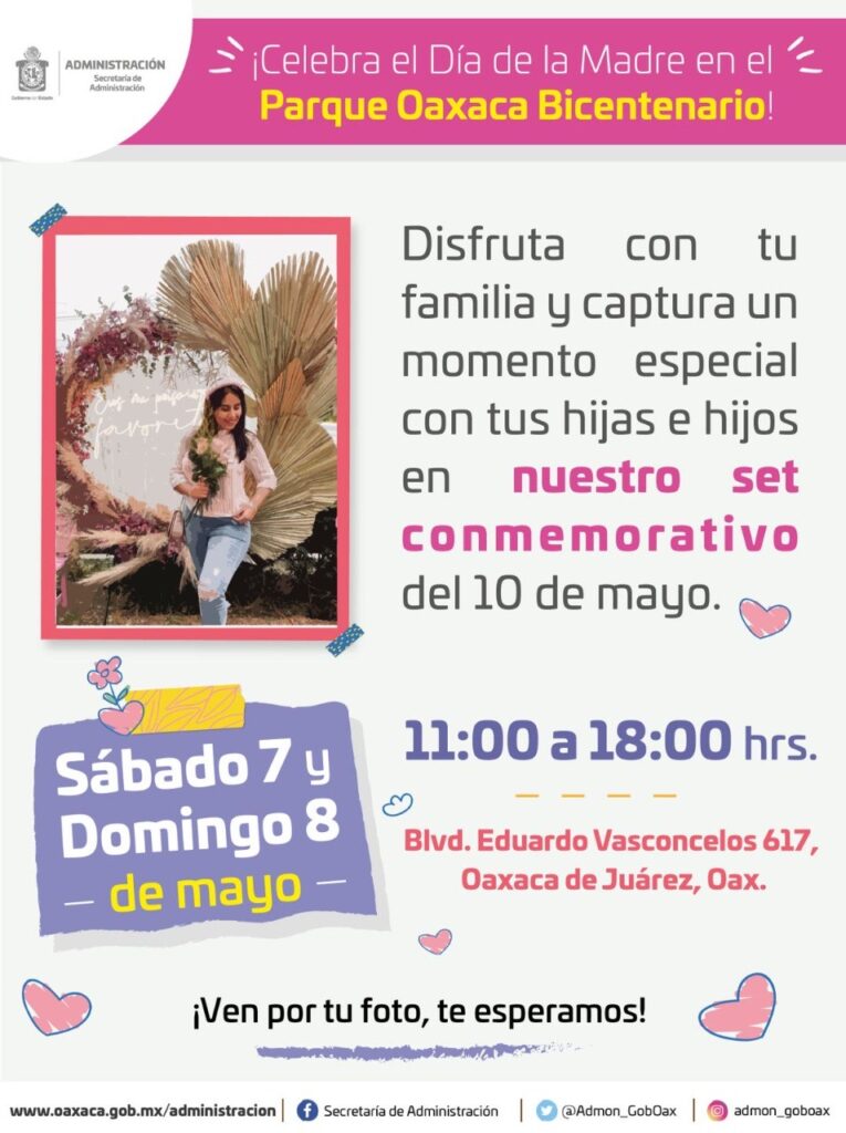 En el marco del Día de las Madres, la Secretaría de Administración del Gobierno del Estado invita a las mamás oaxaqueñas a festejar su día