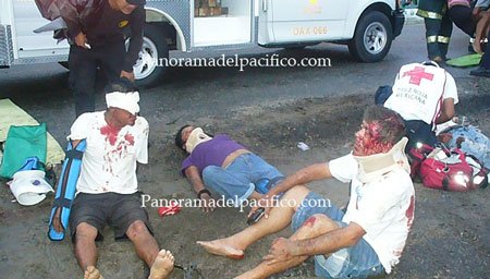A consecuencia de esta coalición  resultaron lesionados los señores , Isaías Gazga Maya, Rigoberta Jiménez, Inocente Cosme López , Mayrlín García García, mismos que fueron trasladados al Hospital Regional de esta  localidad para su atención medica los cuales se reportan delicados así como el operador de Taxi del sitio de la Barra.