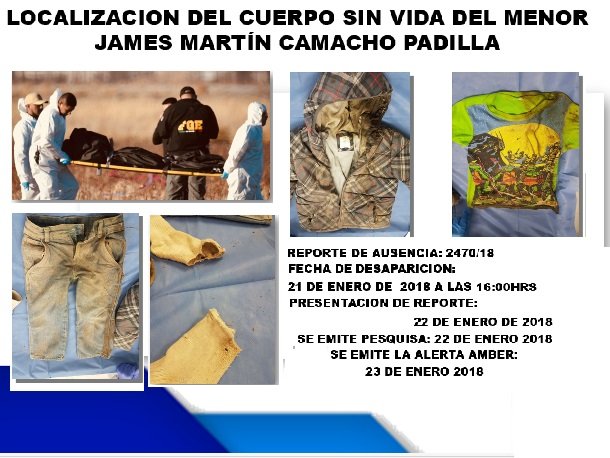 En rueda de prensa, el Fiscal de Distrito Zona Norte, Jorge Arnaldo Nava López, confirmó que el cuerpo sin vida localizado la tarde de ayer en un campo de sembradío corresponde a James Martín Camacho Padilla, reportado desaparecido el pasado 21 de enero.