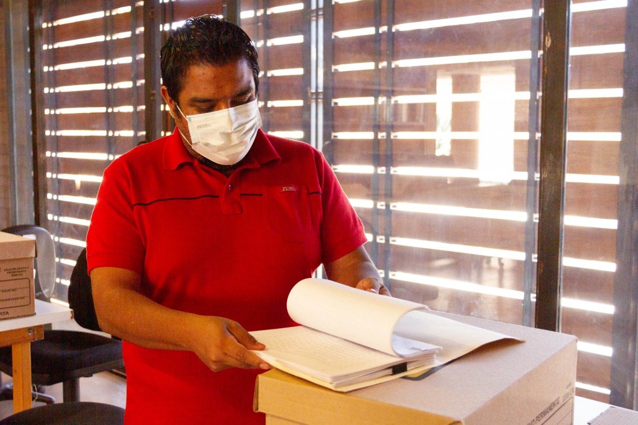 Oaxaca de Juárez, Oax. 12 de abril de 2022.- Desde hace cinco años, Sergio Ulises Pérez Pérez se desempeña como encargado del Departamento de Clasificación, Descripción y Resguardo Documental del Archivo General del Estado de Oaxaca (AGEO), donde implementa una de sus mayores filosofías de vida: Dar sin recibir nada a cambio, pensamiento que le es útil para lograr sus metas personales y las de esta institución.