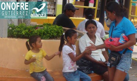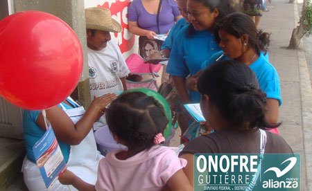 Santa Cruz Huatulco.- Con motivo de la conmemoración del Día del Niño, el equipo de campaña del Conta Onofre, candidato del Partido Nueva Alianza a la diputación federal por el décimo distrito, salió a las calles con la intención de llevar alegría y sonrisas a los pequeños en su día.