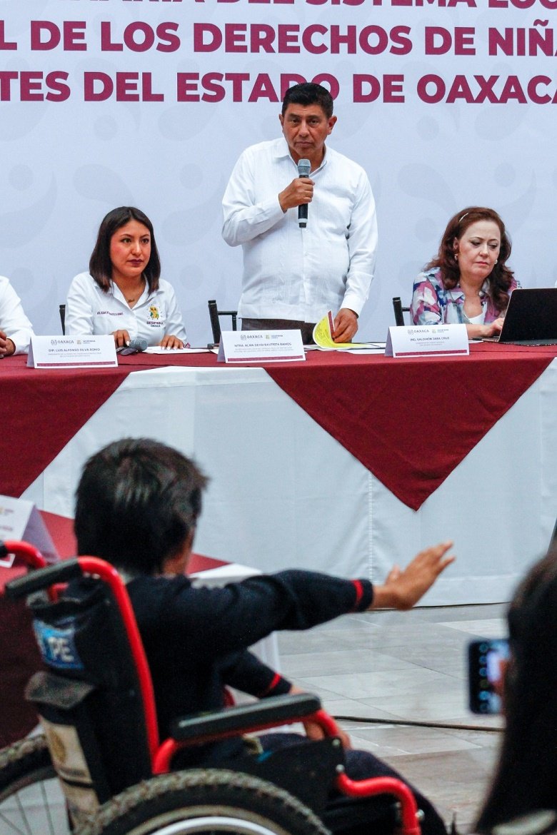 Aseguró que su Gobierno trabaja en un modelo en el cual las infancias y adolescencias puedan desarrollarse, muestra de ello fue la aprobación de los lineamientos de organización y operación del Sistema Local de Protección Integral de los Derechos de Niñas, Niños y Adolescentes del Estado de Oaxaca (Sipinna), así como de las comisiones del mismo.