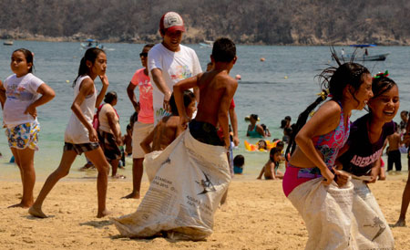 Bahías de Huatulco.- Para fortalecer los lazos familiares a través de actividades de recreación, y con el propósito de celebrar a los niños del municipio, el Sistema DIF Huatulco, que encabeza la Presidenta Honoraria María de la Luz Díaz Ruiz, organizó por segundo sábado consecutivo un recorrido a las bahías y una fiesta de juegos en playa La Entrega para niños y padres de familia de diversas comunidades de la localidad, como una actividad más del programa “Vámonos de Pinta”.