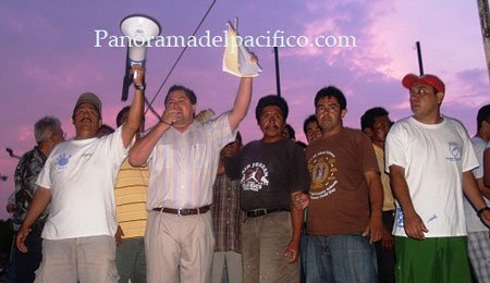Fue en este momento cuando los líderes dela Frente Ciudadano recientemente formado por empresarios conocidos, comerciantes, empleados y demás, iniciaron una serie de intervenciones rechazando esta gestión del Agente Municipal, alegando que él no debió haber ido a Oaxaca, si no debió esperar a que fueran los funcionarios gubernamentales los que deberían haber venido y otras acusaciones ajenas al asunto, como la municipalización de este puerto, los limites y otras, para finalizar exaltados, a agredir a Aragón Roldan y a sus colaboradores, e invitar a ir a la Cabecera Municipal a tomar el palacio,