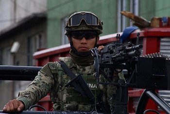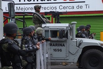 (170720) -- CIUDAD DE MEXICO, julio 20, 2017 (Xinhua) -- Un elemento de la Marina monta guardia durante un operativo en la delegaciÛn Tl·huac, en la Ciudad de MÈxico, capital de MÈxico, el 20 de julio de 2017. Ocho presuntos miembros de un grupo dedicado a la venta de droga murieron el jueves en un tiroteo con oficiales navales en el este de la Ciudad de MÈxico, entre Èstos su presunto lÌder, informÛ el gobierno federal. La SecretarÌa de Marina-Armada de MÈxico seÒalÛ, en un comunicado, que el enfrentamiento se registrÛ en calles de la delegaciÛn polÌtica Tl·huac, despuÈs que los presuntos delincuentes agredieron a los elementos de las fuerzas federales. El supuesto dirigente de la organizaciÛn criminal, identificado como Felipe de Jes˙s PÈrez alias "El Ojos", falleciÛ durante el tiroteo, agregÛ la cartera federal. (Xinhua/Str) (fnc) (dp)