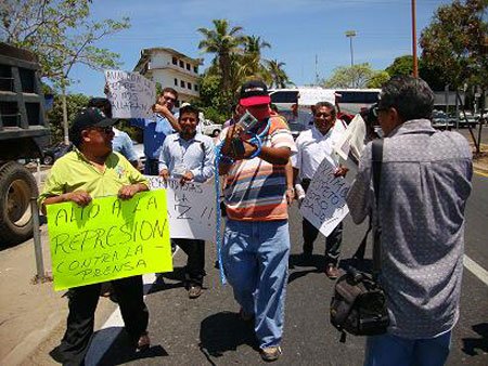 Puerto Escondido. Oaxaca.-  Este día, como en  todo el País, en este destino, los comunicadores se reunieron en el monumento al Benemérito Benito Juárez,  para realizar un acto para denunciar la inseguridad y la represión a su trabajo informativo, así como la exigencia de la urgencia de que se mejoren sus condiciones laborales.