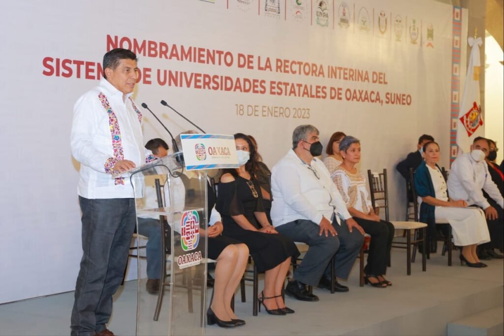Oaxaca de Juárez, Oax., 19 de enero de 2023.- El Gobernador de Oaxaca, Salomón Jara Cruz designó como Rectora Interina del Sistema de Universidades del Estado de Oaxaca (Suneo), a María de los Ángeles Peralta Arias, quien se encargará de coordinar las labores del sistema.