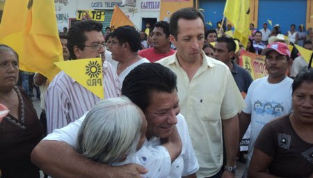 San Pedro Pochutla.- En un mitin del precandidato al senado de la republica Raymundo Carmona Laredo en la plaza las Golondrinas, reunió a militantes, dirigentes del PRD de la región, así mismos estuvieron presentes los dos precandidatos a la diputación federal del PRD el C. p. Olegario Giral y Pepe Palpa.