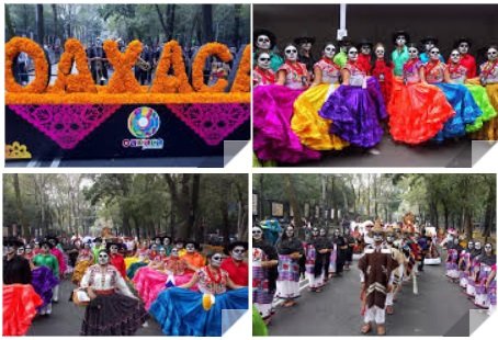 Oaxaca en conjunto con los estados de Aguascalientes, Michoacán y San Luis Potosí, fue invitados especiales de este desfile que con carros alegóricos, catrinas, calaveras monumentales y elementos simbólicos del Día de Muertos, transmitieron a las y los espectadores la belleza de una de las tradiciones más grandes y cautivadoras del país.