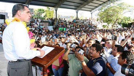 SAN PEDRO POCHUTLA.- 9 de Diciembre de 2010- Tras una intensa agenda de actividades que culminó en este municipio de la Costa oaxaqueña, enmarcada en su Gira por la Reconciliación Social y el Desarrollo de Oaxaca, el Gobernador Constitucional de Oaxaca, Gabino Cué Monteagudo, ofreció aquí una política social, fuerte, intensiva y que llegue a la gente más pobre y sin condicionamientos.