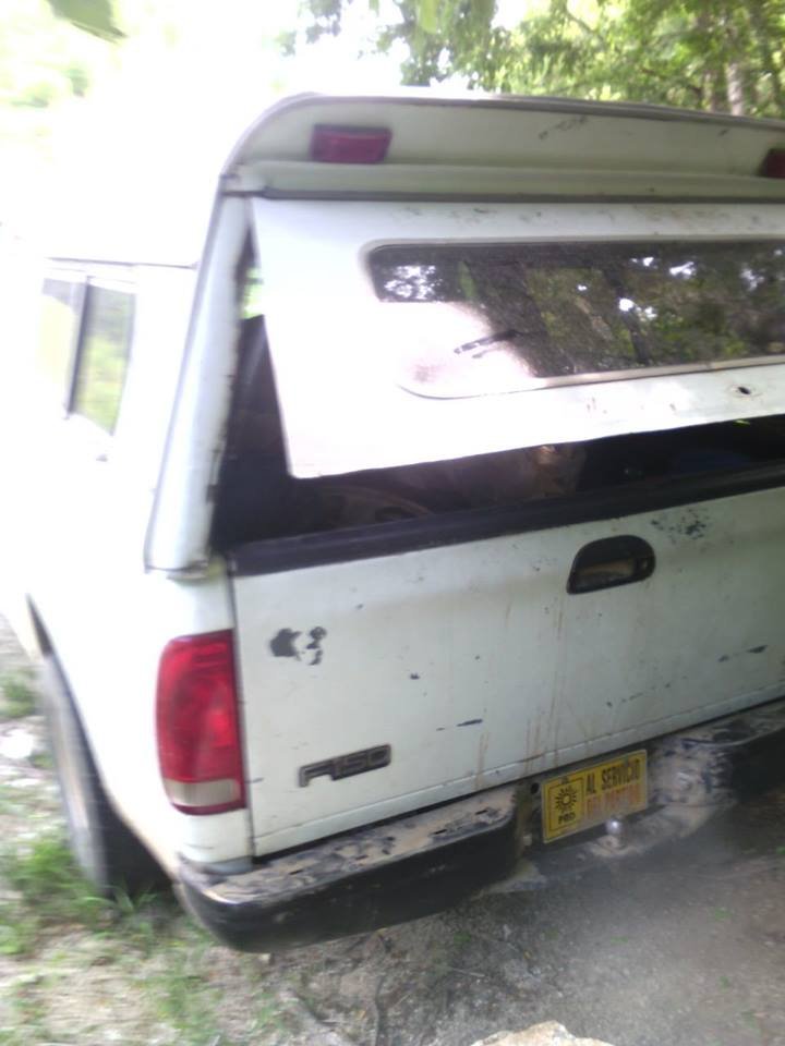 Se trata de una camioneta Ford Lobo f150, blanca, sin placas de circulación, con una calcomanía del Partido Revolucionario Democrático y que al parecer era utilizada por una madre de familia, ya que en su interior se encuentran rastros de útiles escolares, ropa y juguetes infantiles.