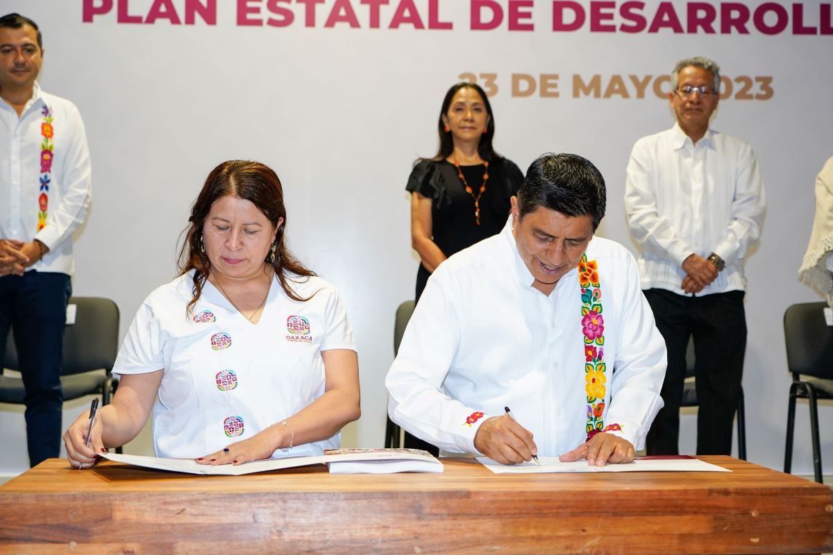 Acompañado por la Presidenta Honoraria del Sistema para el Desarrollo Integral de la Familia (DIF), Irma Bolaños Quijano, destacó que el PED es resultado de un ejercicio de consulta democrático e histórico, en el que se escucharon a todos los sectores sociales, pueblos y comunidades de Oaxaca.