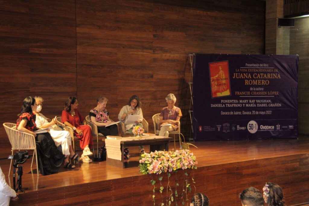 Oaxaca de Juárez, Oax., 23 de mayo de 2022.- La Secretaría de Administración, a través del Archivo General del Estado de Oaxaca (AGEO), en colaboración con la Fundación Harp Helú y el Colectivo 50+1, llevaron a cabo la presentación del libro “La vida extraordinaria de Juana Catarina Romero”, de la autora Francie Chassen López.