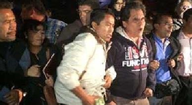 Durante el desalojo, los dirigentes de la sección 22 de Oaxaca, Rubén Núñez y de la sección 18 de Michoacán, Juan José Ortega, intentaron hacer un cerco pero no lograron concretarlo.