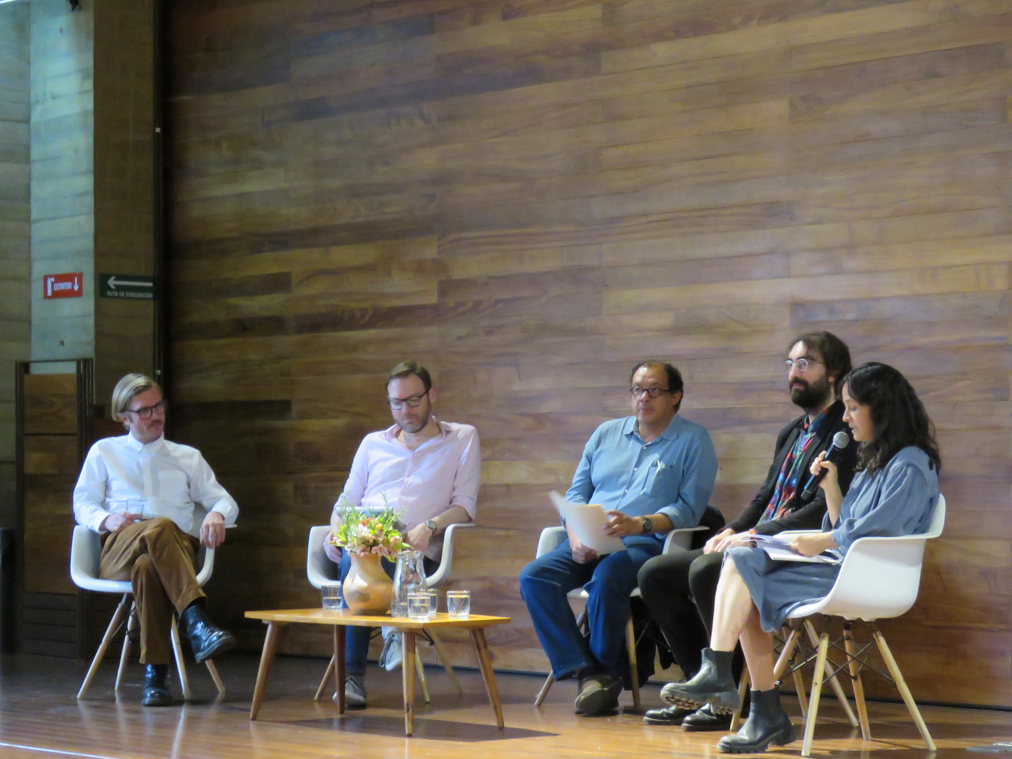 El investigador de animación Dan Bashara, el filósofo de cine Byron Davies, el animador y docente Derek G. Larson, el filósofo e investigador Carlos Oliva Mendoza, la moderadora Isabel Rojas y Hernández Maimone, dialogaron con las y los estudiantes y público en general, haciendo de esta actividad una fructífera reflexión y retroalimentación desde la filosofía, la estética e historia del contexto político, social y económico en torno a la animación hecha en México en los años cincuenta.