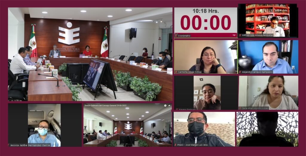 Lo anterior en sesión ordinaria correspondiente al mes de junio, misma que estuvo encabezada por la consejera presidenta, Elizabeth Sánchez González; las consejeras electorales Carmelita Sibaja Ochoa, Jessica Jazibe Hernández García, Nayma Enríquez Estrada y Zaira Alhelí Hipólito López; los consejeros electorales Alejandro Carrasco Sampedro y Wilfrido Lulio Almaraz Santibáñez; así como el secretario del Consejo General, Juan Carlos Merlín Muñoz y las representaciones de los partidos políticos.
