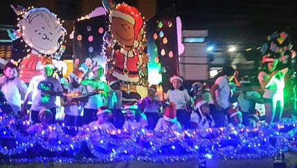BAHÍAS DE HUATULCO. – Se llevó a cabo el desfile navideño donde participaron más de 20 vehículos adornados con luces y adornos navideños encabezado por la escuela Colegio de la Santa Cruz y automovilistas e empresas.