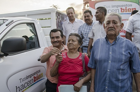 Germain Leyva Fuentes, habitante de la comunidad de Copalita, además de obtener el 15% de descuento en el pago de su impuesto, resultó ganador de una camioneta Nissan tipo estacas reforzada modelo 2016, con un valor en le mercado de 208 mil pesos; y en su ausencia, sus padres Catalina Fuentes y Genaro Leyva, originarios de San José Cuajinicuil, acudieron a recibir tan importante premio, dando la seguridad a los contribuyentes que el vehículo se entregó en tiempo y forma.