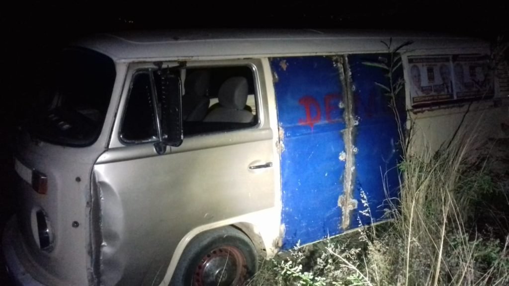 Eran las 03:30 horas, cuando en un terreno baldío fue confirmado el hallazgo del vehículo tipo combi, color beige y puerta del lado izquierdo de color azul marino, con placas de circulación MWZ1355 del Estado de México, mismo que había sido reportado como robado.