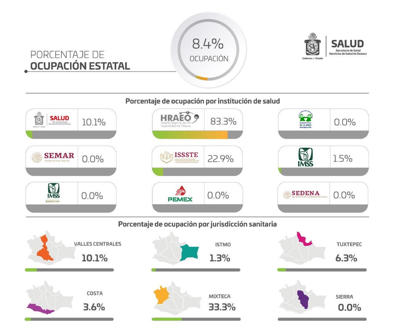 La dependencia reiteró a la población que la entidad cuenta con cinco centros de valoración de primer contacto en la zona conurbada como el Hospital General de Zona 1 del IMSS, Hospital Regional Presidente Juárez del ISSSTE, Hospital General Doctor Aurelio Valdivieso, Centro de Salud Urbano 1 y el Hospital Regional de Alta Especialidad de Oaxaca, y ante cualquier emergencia llamar al 911.