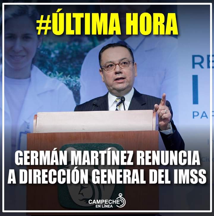 Germán Martínez presentó su renuncia a la dirección general del Instituto Mexicano del Seguro Social (IMSS), con lo que se convirtió en el primer funcionario de alto nivel de separarse de su cargo dentro de este nuevo gobierno.