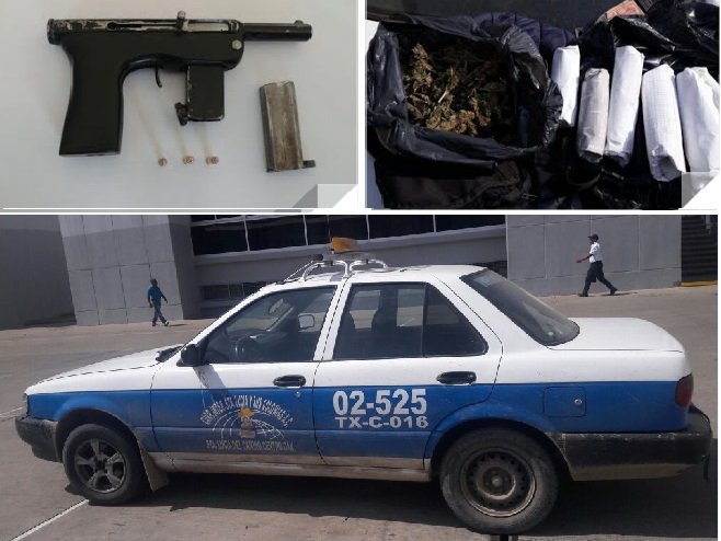 Así, al efectuar una revisión preventiva a la unidad de motor, en el asiento trasero se localizó una bolsa negra que contenía hierba seca con características de marihuana y seis envoltorios de papel con el mismo enervante.