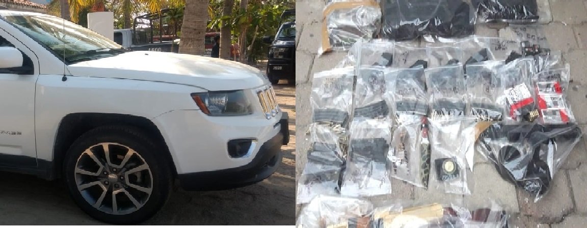 Según los primeros reportes los detenidos son; E. V. V. (A) “CABEZA LOCA”, de 41 años, originario de Los Mochis, Sinaloa, de ocupación Guardia de Seguridad de un Hotel de Bahías de Huatulco, quien conducía el Vehículo marca Jeep tipo Compass color blanco sin placas de circulación.