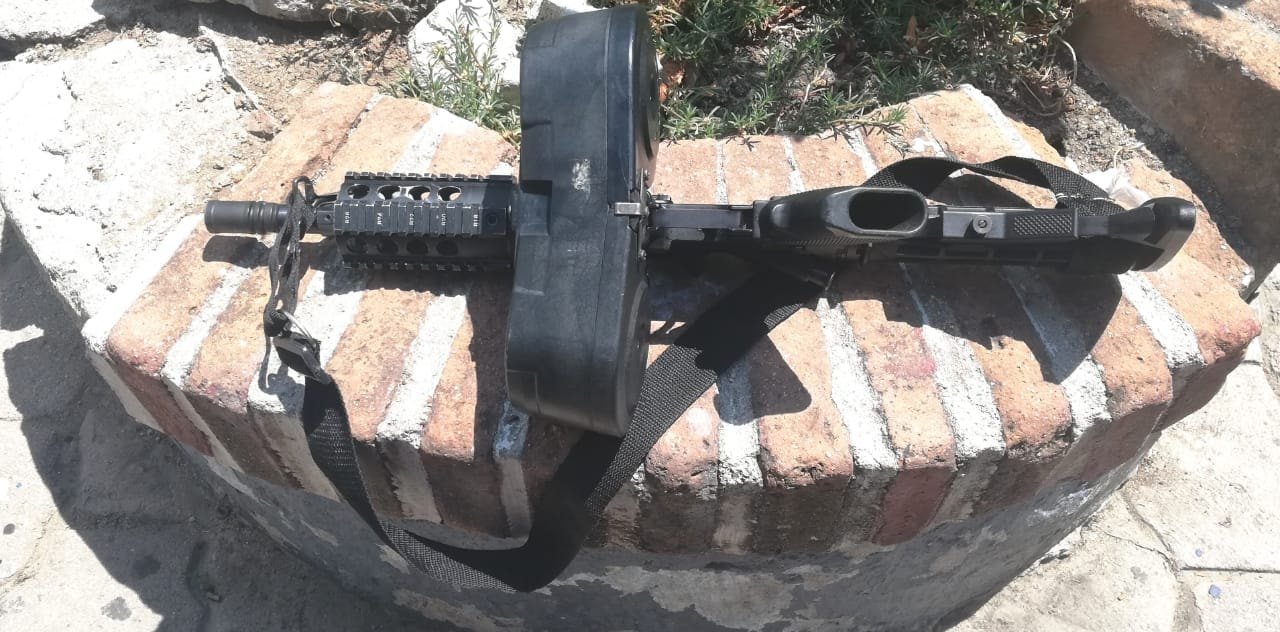 A esos sujetos les fueron aseguradas en el interior de dicho vehículo, un total de 2 armas largas ( un AK 47 calibre 7.62 dorado y un AR-15, calibre 223), 2 Armas cortas calibre 9 mm, una de la marca Taurus, Brasileña, y una marca Jericho, Israelita; 2 chalecos antibalas con su respectiva placa, así como 782 cartuchos útiles de diferentes calibres, cargadores y 4 teléfonos celulares, además de dinero en efectivo.