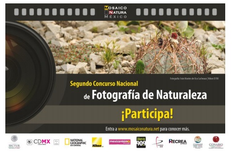 Este 7 de diciembre, instituciones de distintos sectores del país lanzaron la convocatoria del Segundo Concurso Nacional de Fotografía de Naturaleza. El anfitrión del evento fue el Museo de Arte Popular ubicado en el centro de la Ciudad de México. La convocatoria invita a todos los ciudadanos residentes en México a participar en el concurso y a enviar sus imágenes sobre la biodiversidad mexicana al sitio oficial ubicado en Mosaico Natura México www.mosaiconatura.net. La convocatoria estará abierta del 7 de diciembre de 2015 a las 23 hs del 29 de febrero de 2016.