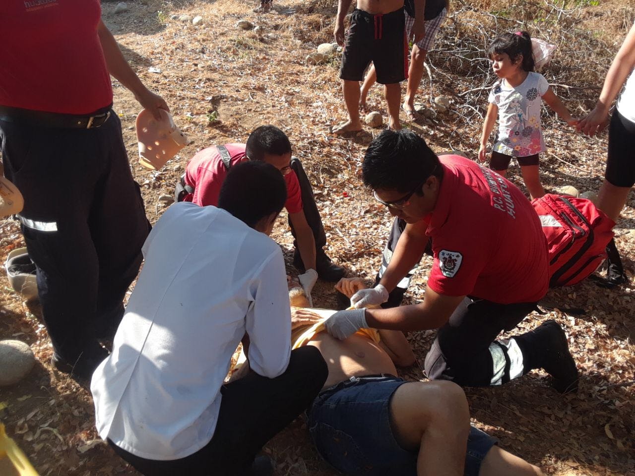 En el lugar se le brindó los primeros auxilios y fue trasladado a bordo de la ambulancia del cuartel de Bomberos, Huatulco a la Cruz Roja Mexicana para recibir atención medica adecuada.