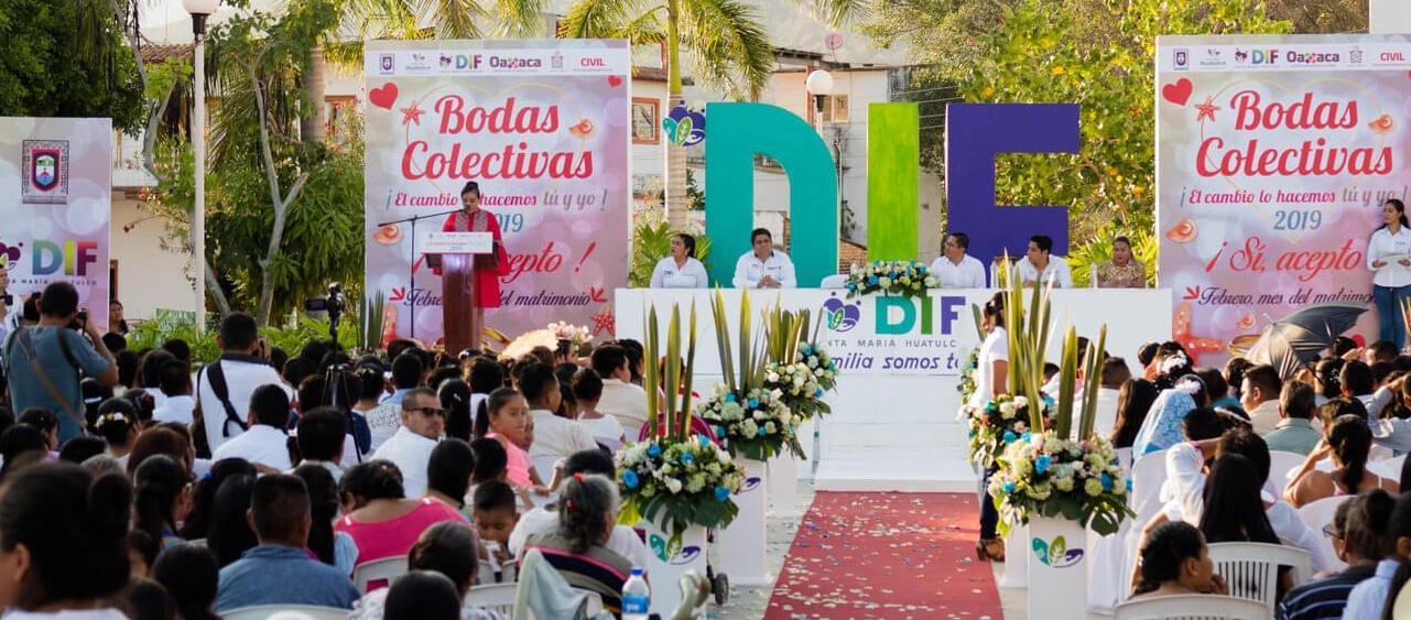 Con la presencia de 103 parejas que formalizaron su unión por la vía del matrimonio civil, se llevaron a cabo con éxito en la explanada de Santa María Huatulco frente al Palacio Municipal las Bodas Colectivas 2019 “Sí, acepto”, acto que tuvo como testigo de honor a presidente honoraria del DIF Municipal, Reyna Olmedo en un programa promovido por el presidente municipal Giovanne González a través del Registro Civil.