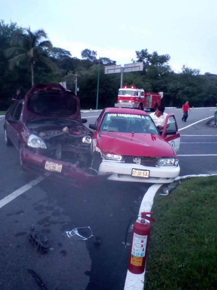 Accidente en cruce de acceso a Bahías de Huatulco, vehículo particular vs taxi.