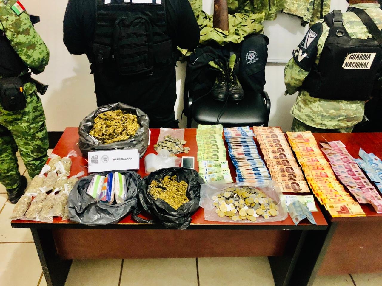Además, se aseguró una escopeta, cartuchos de diferentes calibres, uniformes de seguridad apócrifos, dinero en efectivo, una báscula y una motocicleta.
