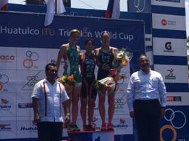 Gonzalo Tavera y Alina Hanschke ganaron el Triatlón GMC Huatulco 2014 efectuado esta mañana.