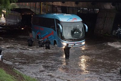 Severas anegaciones provocaron las precipitaciones pluviales de este jueves en el norte de la Ciudad de México; además de afectaciones en el transporte público desde y hacia el Estado de México