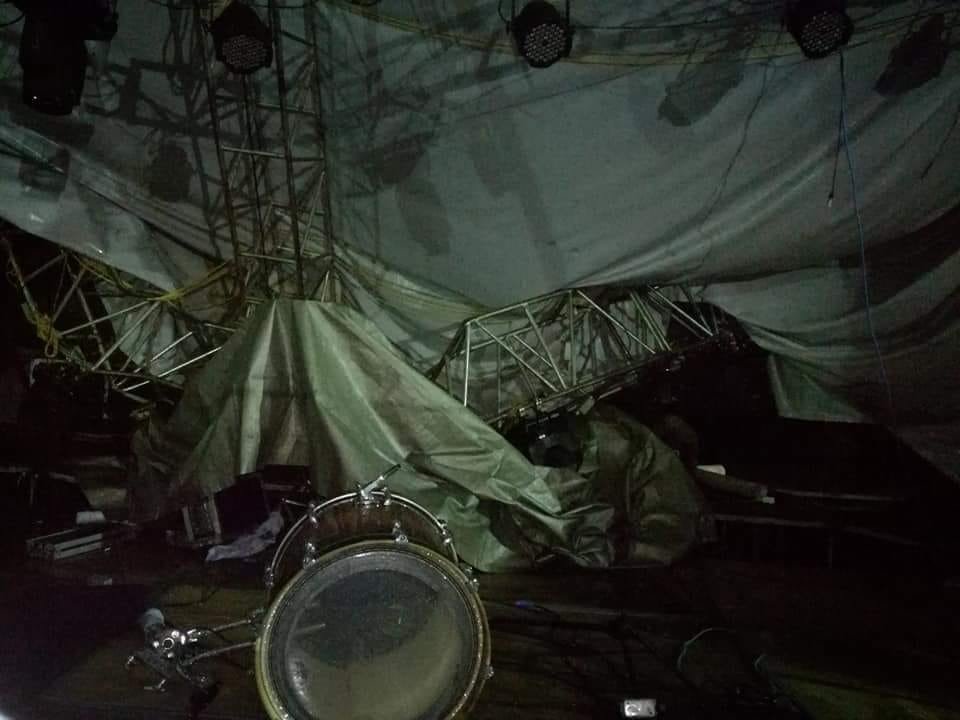 El titular de la CEPCO, Heliodoro Díaz Escárraga, informó que el incidente ocurrió la noche de este miércoles cuando los trabajadores colocaban el escenario para el baile, cuando una fuerte lluvia con granizo provocó que colapsara parte del escenario.