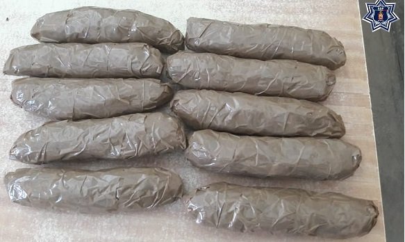 Durante la revisión preventiva a una camioneta pasajera tipo urban de las líneas unidas número 068, los elementos de la Policía Estatal, le aseguraron a un pasajero, una bolsa negra con 10 envoltorios que contenían hierba seca al parecer marihuana, con un peso de aproximadamente un kilogramo.