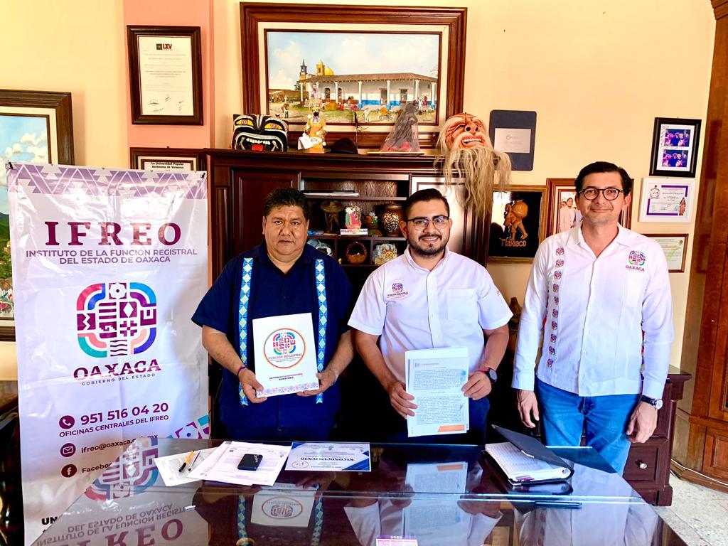 Con esta firma, el municipio deberá facilitar el espacio para la instalación de la Registraduría, así como recursos necesarios para su operación (energía eléctrica, agua y servicios de internet); en tanto, el IFREO dotará de elementos técnicos, tecnológicos y de personal capacitado parar realizar los actos de inscripción y certificación al registro público.