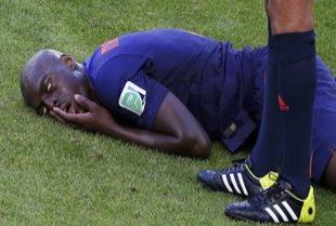 Se trata de Bruno Martins Indi quien recibió un golpe en su tobillo provocado por el delantero australiano Tim Cahill. Tras este golpe, el holandés cayó al piso y no pudo evitar que su cabeza golpeara contra el piso, lo que le provocó la lesión más grave. Sucedió en el estadio Beira-Río, en el duelo por la segunda fecha del grupo B en Belo Horizonte.