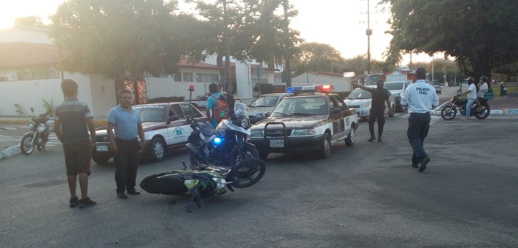 Bahías de Huatulco. – Un motociclista que circulaba sobre el boulevard de Chahue, Huatulco, chocó contra otro vehículo que circulaba hacia al hospital del seguro social y perdió el control y cayo.