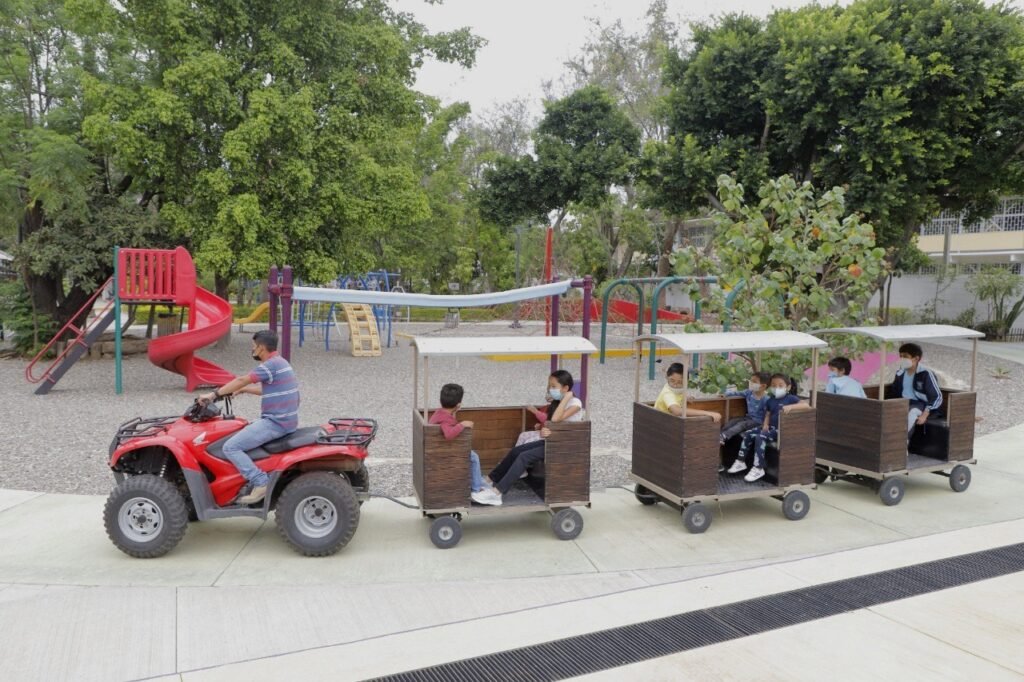 La niñez también puede disfrutar de un emocionante paseo en tren y viajar en el carrusel eléctrico, uno de los atractivos más bonitos de este parque ubicado en el Bulevar Eduardo Vasconcelos de la capital oaxaqueña.