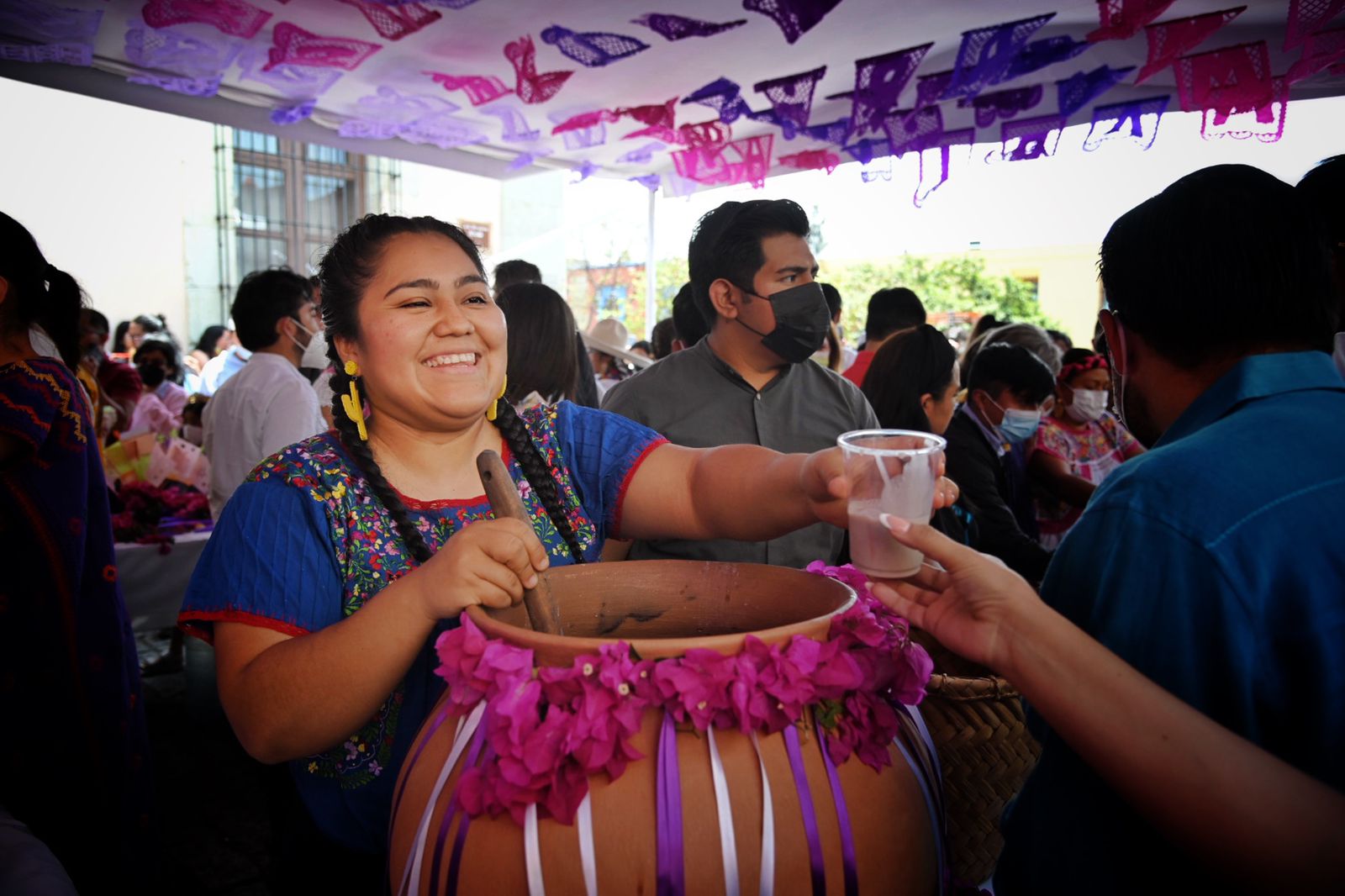 Las calles lucen grandes ollas de barro y arcos decorados con flores de buganvilia, palmas, tiras de papel de china y pendones de tela en colores blanco y morado; quienes recorren el Andador Turístico, el Paseo Juárez “El Llano”, el Templo de la Preciosa Sangre de Cristo, la Casa 8 Regiones, el Instituto Oaxaqueño de las Artesanías o los barrios de la Merced, Xochimilco y Jalatlaco, obtienen de forma gratuita las bebidas emblemáticas.