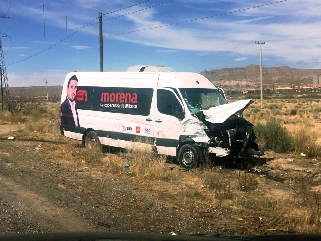 Simpatizantes del partido Morena que acudieron este día al arranque de campaña electoral de Andrés Manuel López Obrador se accidentaron esta tarde en la carretera Ciudad Juárez- Chihuahua, sin que hasta el momento se reporten personas lesionadas.