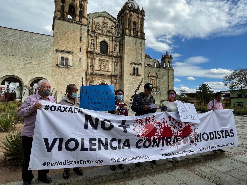 Frente al templo de Santo Domingo de Guzmán en la capital oaxaqueña, medios de comunicación convocados por la Asociación de Periodistas de Oaxaca (APO) se manifestaron contra los actos de violencia contra la prensa, por lo que exigieron al gobierno de México y Estatal a actuar en consecuencia para la aplicación de una justicia digna.